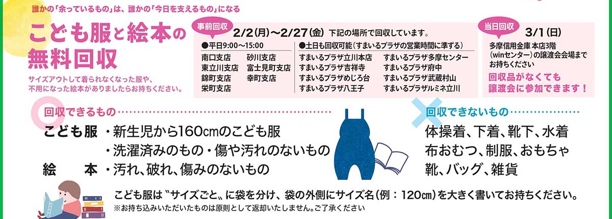 【参加無料】3月1日(日)にたましん本店で「こども服の譲渡会」が開催されるみたい!2月27日(金)まで無料の事前回収も実施中