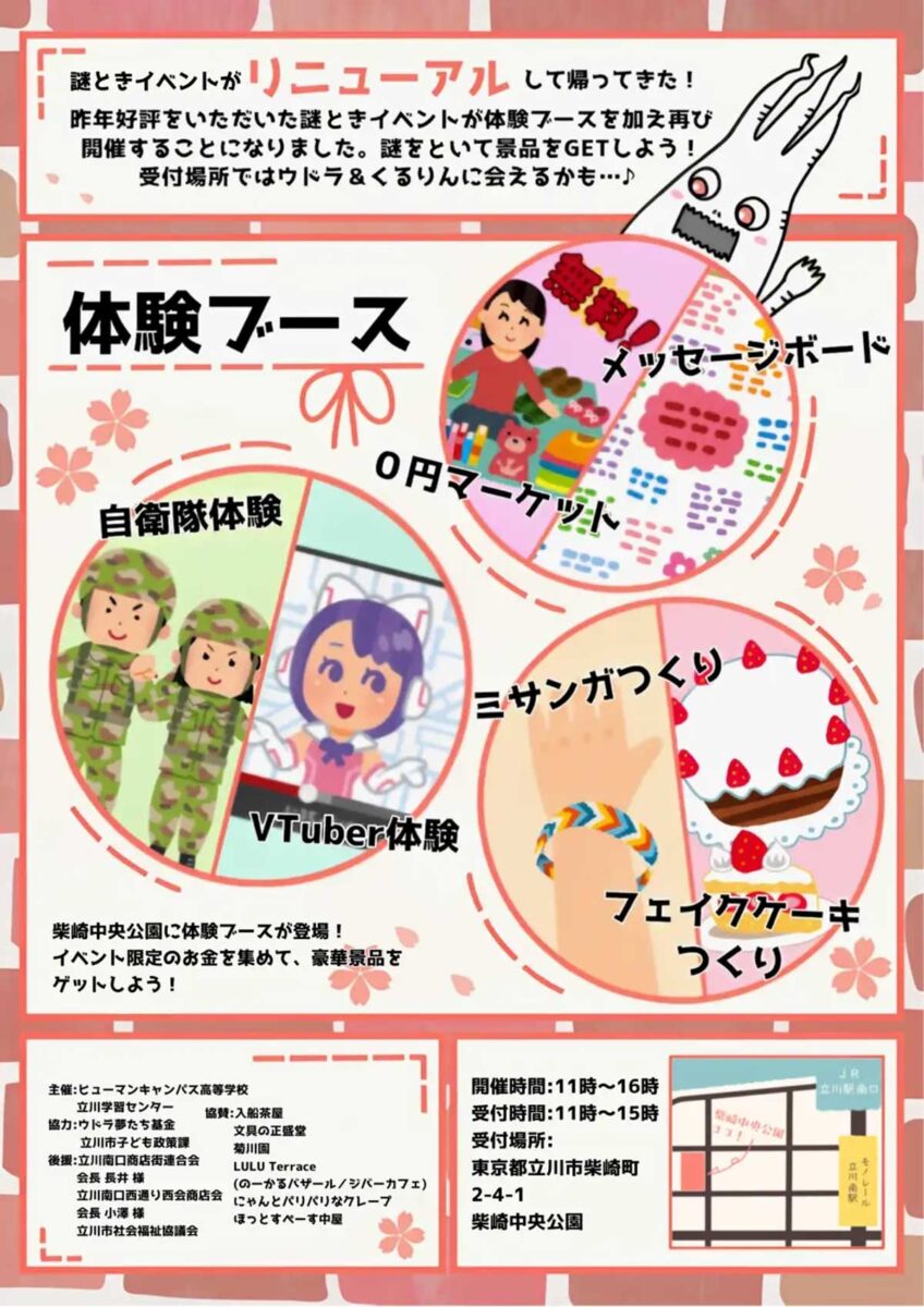 こちらのイベントは、ヒューマンキャンパス高等学校立川学習センターの生徒さんが企画したもので、