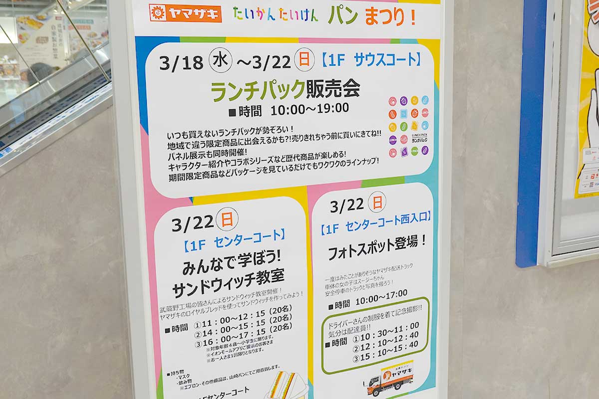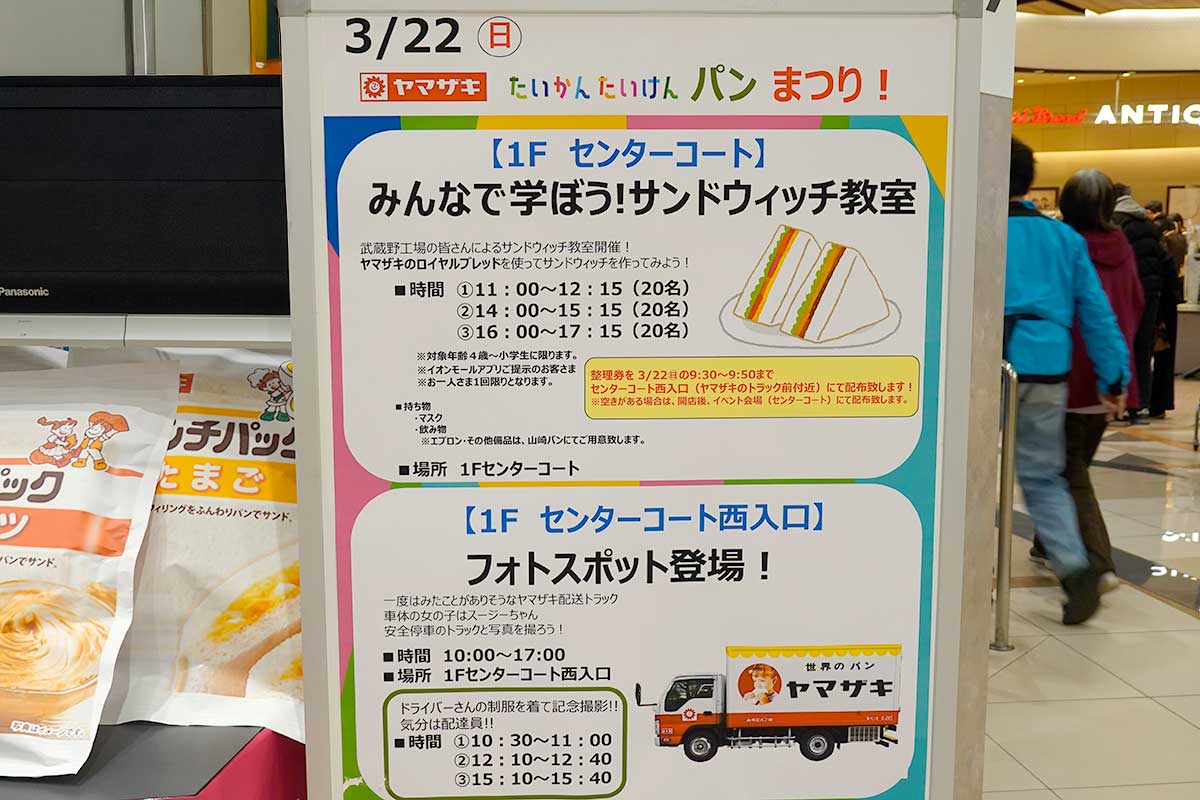 今週末はパンだらけ!イオンモールむさし村山で3/21まで開催中の「第7弾 多摩発見マルシェ~パンコレクション」と3/22までの「ヤマザキたいけんたいかんパンまつり!」へ行ってみた