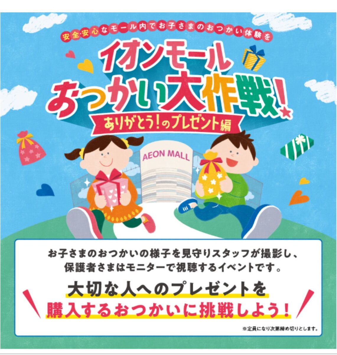 「イオンモールおつかい大作戦!~ありがとう!のプレゼント編」が開催されます。