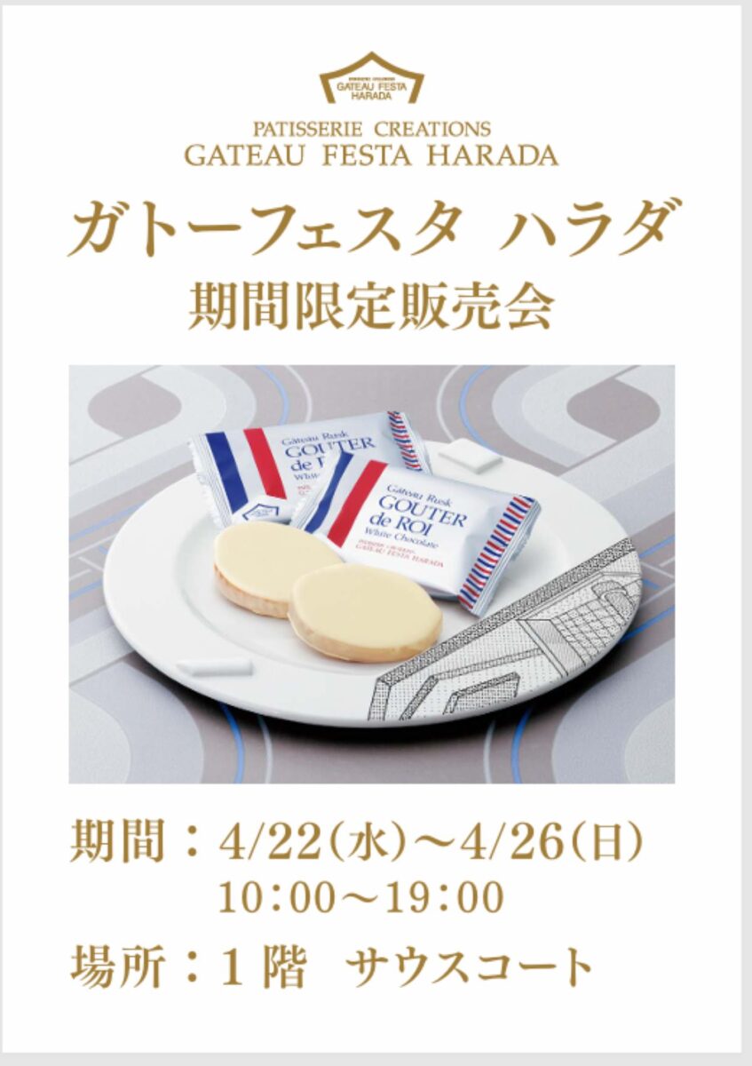 4月22日(水)~4月26日(日)はイオンモールむさし村山で『ガトーフェスタハラダ』のお菓子が入手可能。