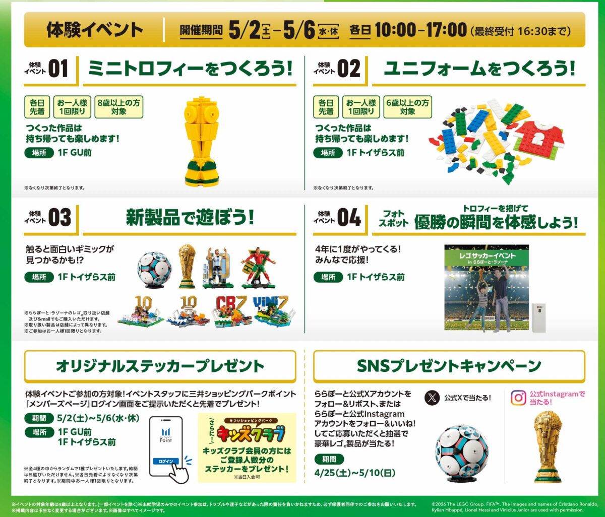 大人も子どもも大好きなレゴ®︎、そして今年2026年開催のサッカーワールドカップにちなんだイベントとなっています。