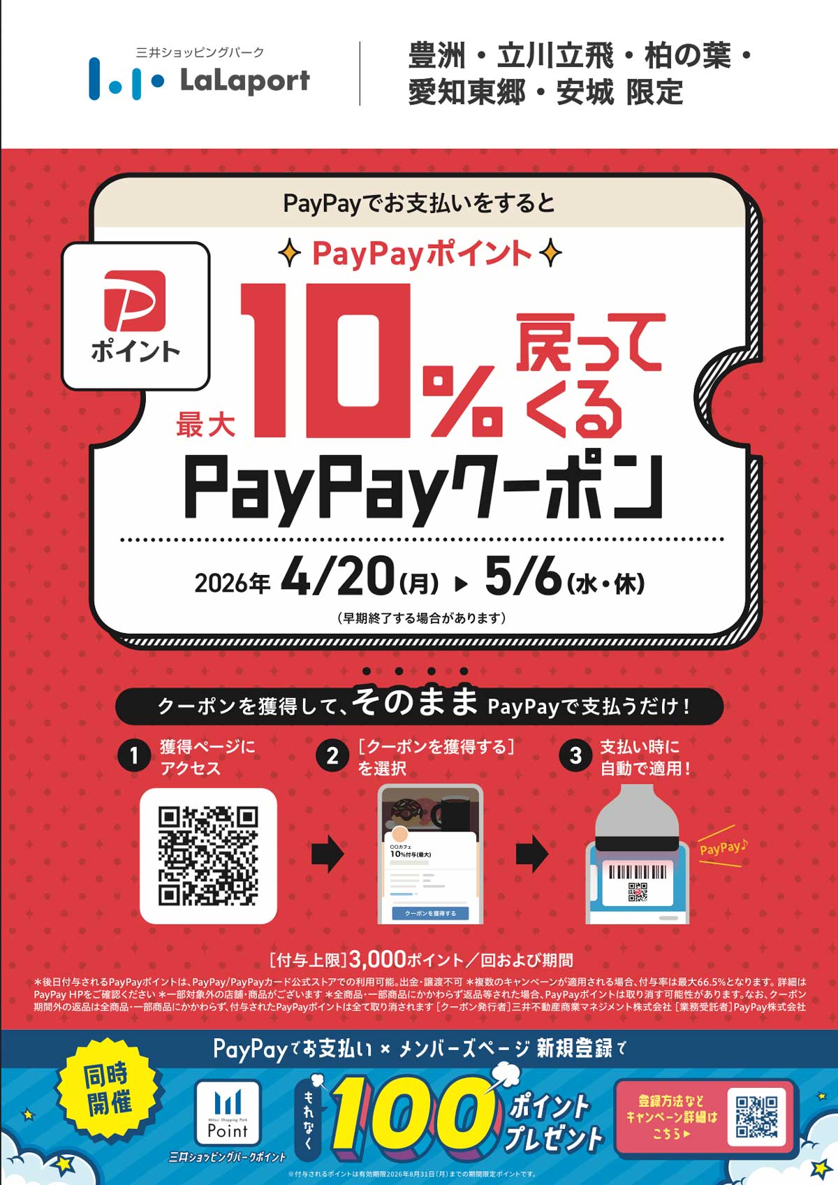PayPayでお支払いをするとPayPayポイント最大10%戻ってくるクーポン | ららぽーと立川立飛