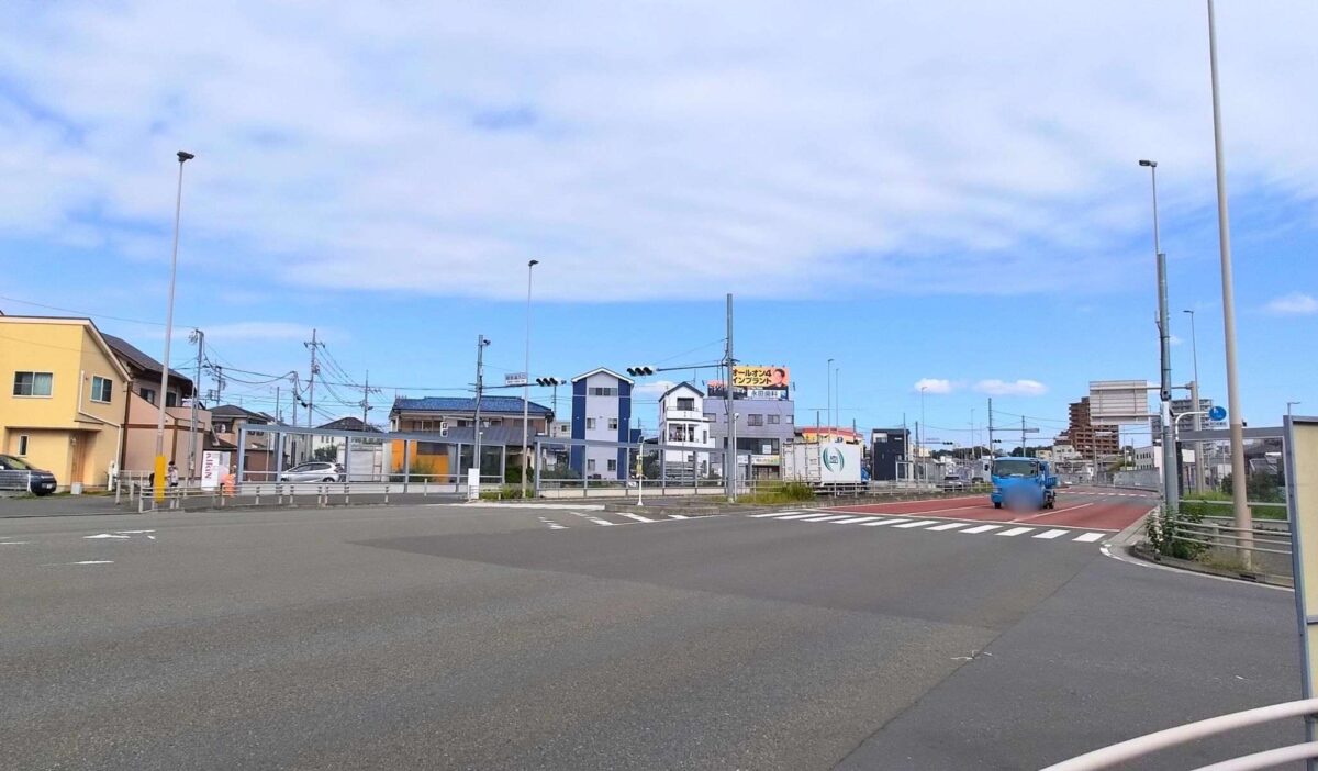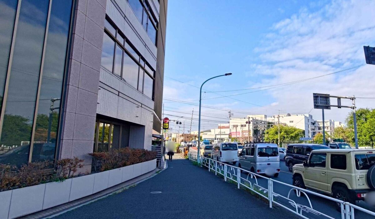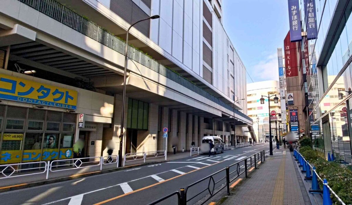 アドコンタクトとみずほ銀行の間を通り、曙町一丁目交差点の踏切を超えて昭島方面へ↓