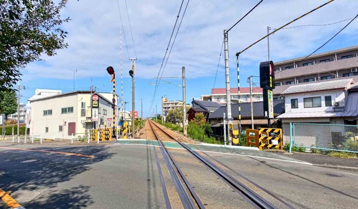八高線の踏切を超えて拝島方面へ。真っ直ぐ伸びた単線が美しい↓