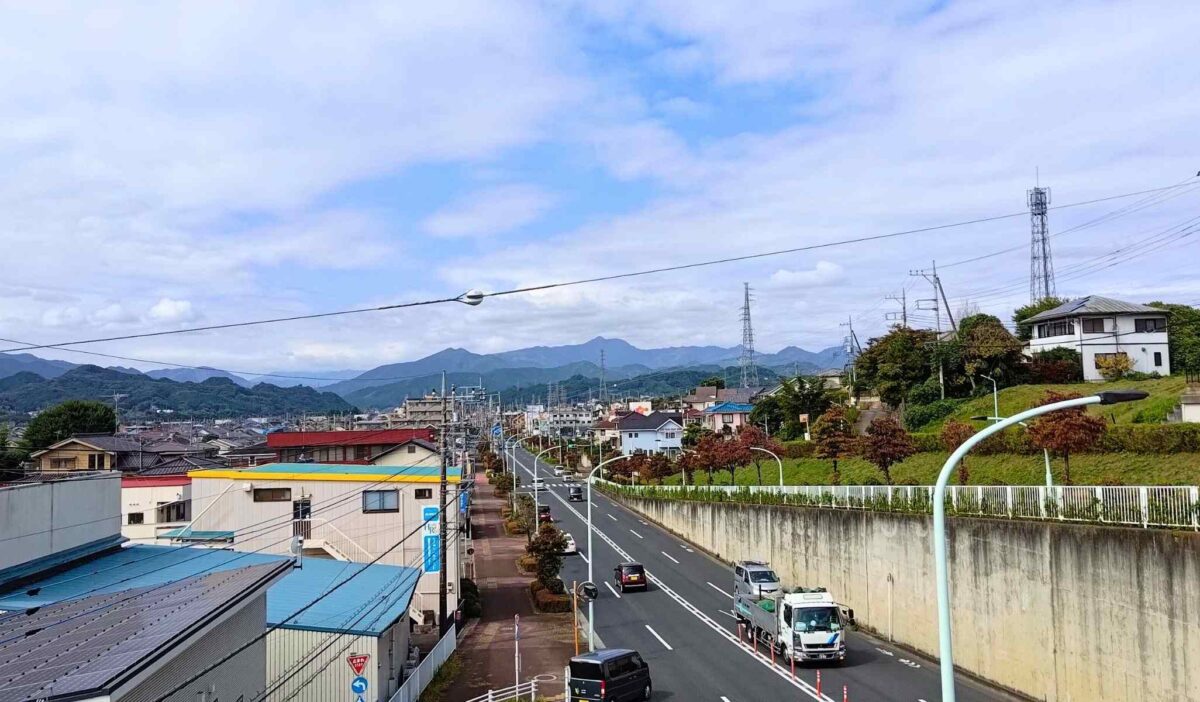 途中の立体交差では、遠くにあきる野方面の山々が見えました↓