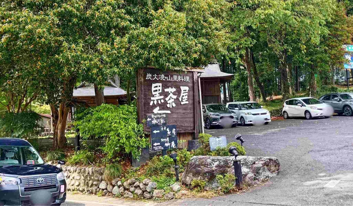 駐車場を通り抜けると、『黒茶屋』のシンボルの水車が↓