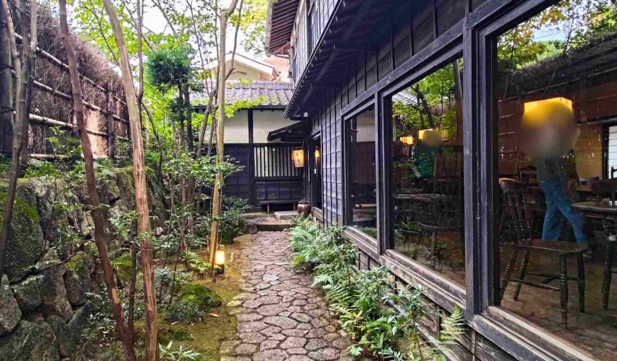 きれいに整えられた黒茶屋内の庭園は、木々に囲まれてひんやりと涼しいです↓