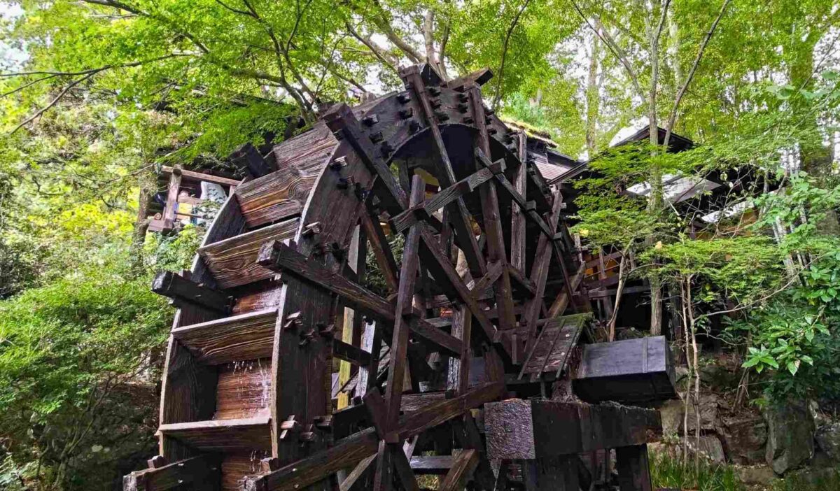 上からの水をザバザバと浴びながら回っている水車には、力強さを感じます。