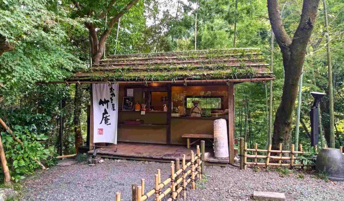 水車の対面には可愛らしい小屋『おやき屋 竹庵』が↓