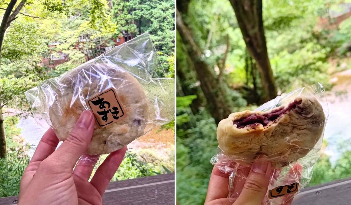 ということで、焼きたての「小豆おやき」150円を1つ購入してさらに敷地の奥へ。