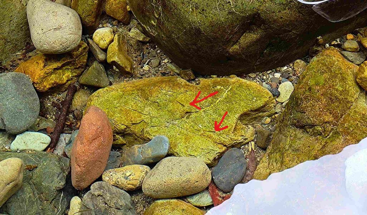 川の淵部分では水たまりのようになっていて、メダカサイズの小さな魚が泳いでいました↓