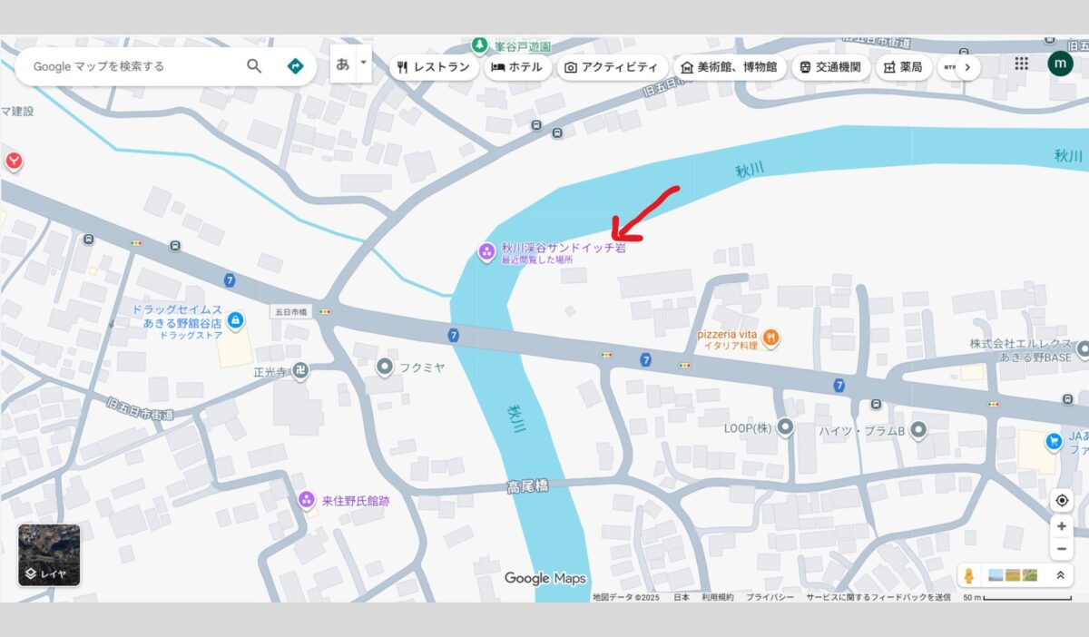 五日市橋を渡るときに、Googleマップで気になる表記を発見↓