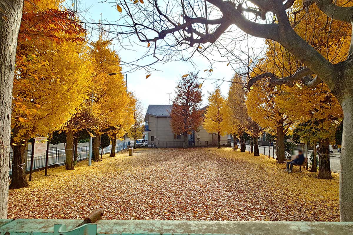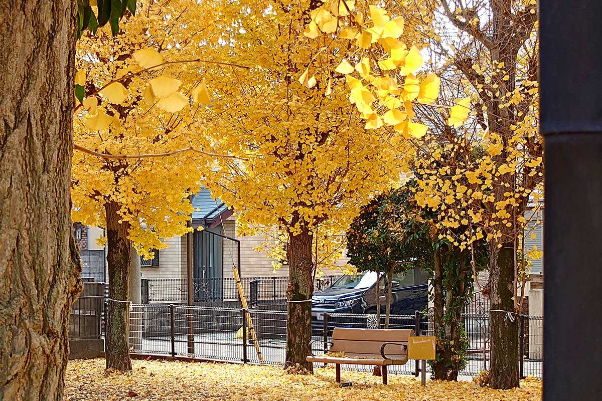 公園内にはベンチもあるので、ゆっくり座ってイチョウ鑑賞もできます。
