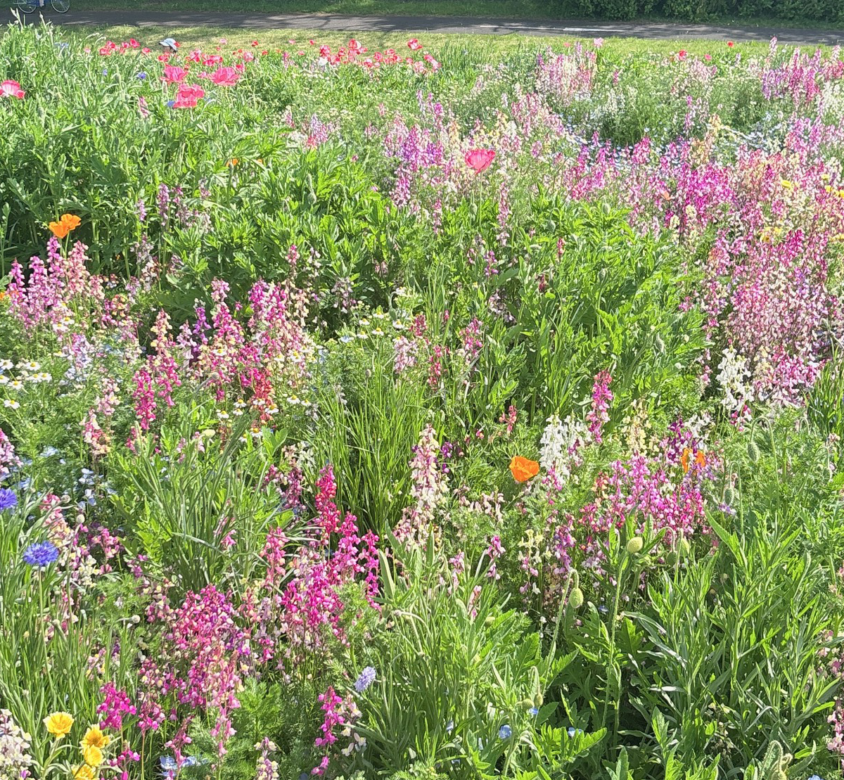 チューリップガーデンを歩き進めると『原っぱ西花畑』に到着。