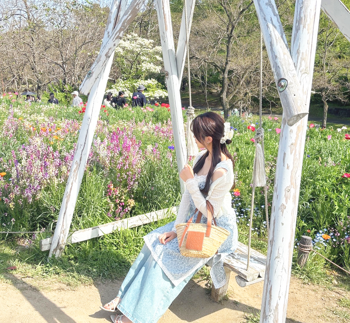 お花に囲まれながら乗るブランコはまるでアルプスの少女ハイジみたい……!