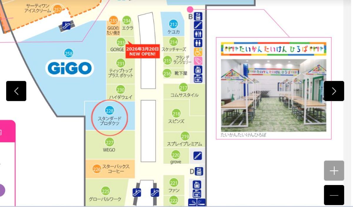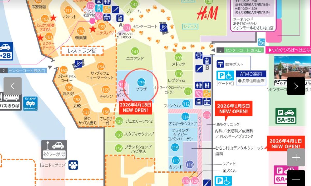 1階レストラン街近くにある『PLAZA イオンモールむさし村山店』です。