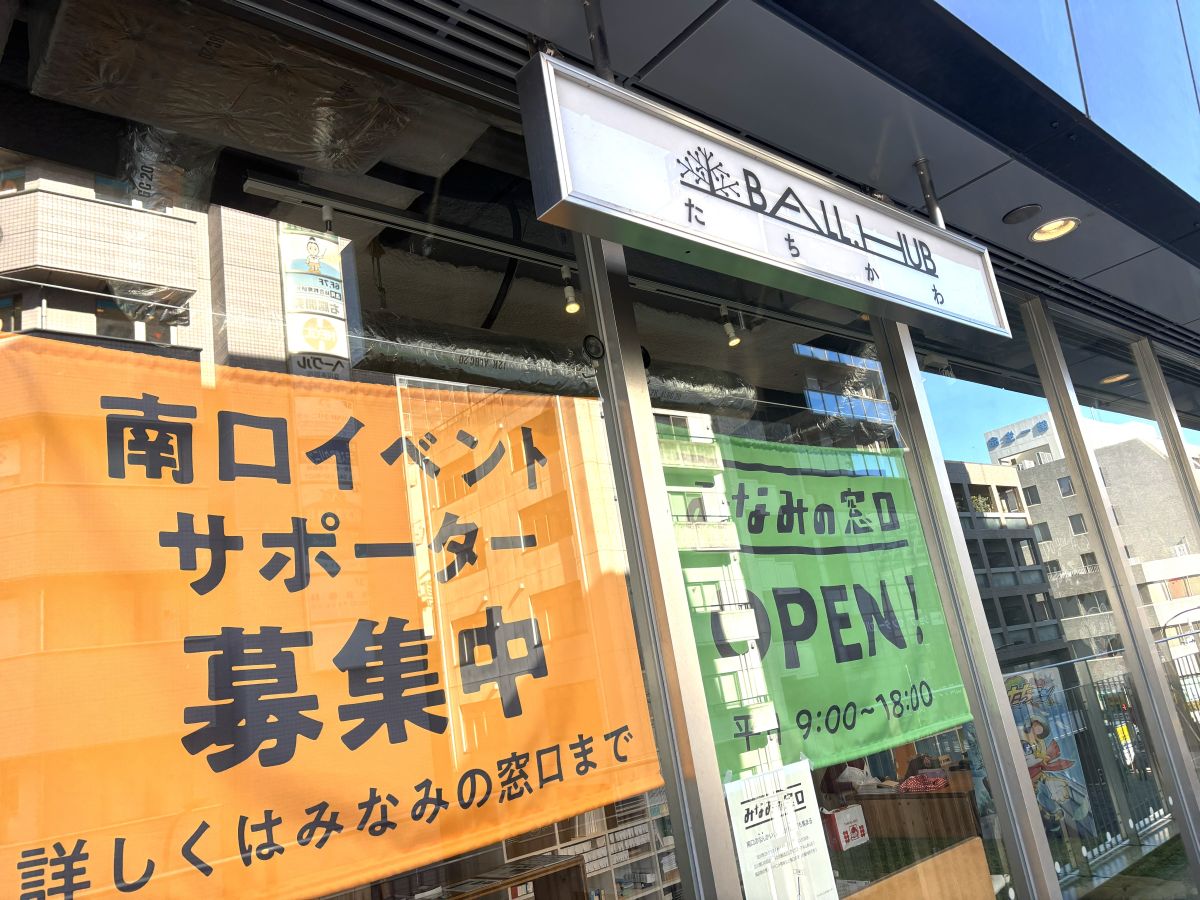立川南エリアの商店街やイベントの情報などを発信する、街の案内所・交流場のような施設みたい。